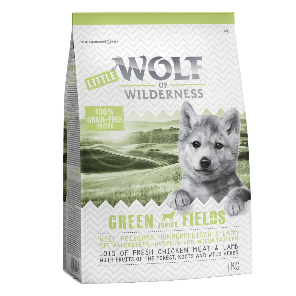 Wolf of Wilderness JUNIOR wordt gekenmerkt door: Geïnspireerd door de voedingsgewoonten van de wolf in de natuur – voor honden van elk ras en elke grootte. Receptuur 100 % graanvrij, dus ook geschikt voor honden die overgevoelig zijn voor granen. Eiwitten van hoogwaardige kwaliteit: ten minste 33 % vers kippenspiervlees en waardevol eiwitten. Soortgericht en natuurlijk: geen kunstmatige conserveringsmiddelen, kleur- of smaakstoffen toegevoegd. Wild en origineel: verfijnd met wilde bessen, wortels en wilde kruiden. Met waardevolle aloë vera. Verantwoorde premium-kwaliteit: het voedsel wordt geproduceerd in een familiebedrijf in Duitsland, de verpakking is recyclebaar. Let erop dat het bovenstaande aanbod enkel geldt onder artikelnummer 757139. Wolf of Wilderness Junior voeding wordt gekenmerkt door de volgende voordelen: Een harmonieuze groei kan worden ondersteund – door meer eiwit en een optimale Ca/P-verhouding. De ontwikkeling van de hersenfunctie en het gezichtsvermogen kan worden ondersteund – door toevoeging van DHA-rijk algenmeel. Gewrichten kunnen worden ondersteund – door toevoeging van de waardevolle kraakbeenbouwstenen chondroïtinesulfaat en glucosamine Kan de algemene gezondheid en behendigheid van jonge honden bevorderen – door een hoger gehalte aan vitaminen en voedingsstoffen Kleinere brokjes zorgen voor een optimale voedselopname Verdere informatie over de artikelen vind je hier: JUNIOR Wild Hills – Eend JUNIOR Green Fields – Lam Wolf of Wilderness is soorteigen hondenvoer gebaseerd op het oorspronkelijke dieet van de wolf in het wild. Naast veel vers vlees bevatten de graanvrije recepten wilde bessen, wortels en wilde kruiden. Wild en origineel. Wild en vrij. Meer informatie over de merkfilosofie en het gehele premium voedingsassortiment van “Wolf of Wilderness” vind je HIER.