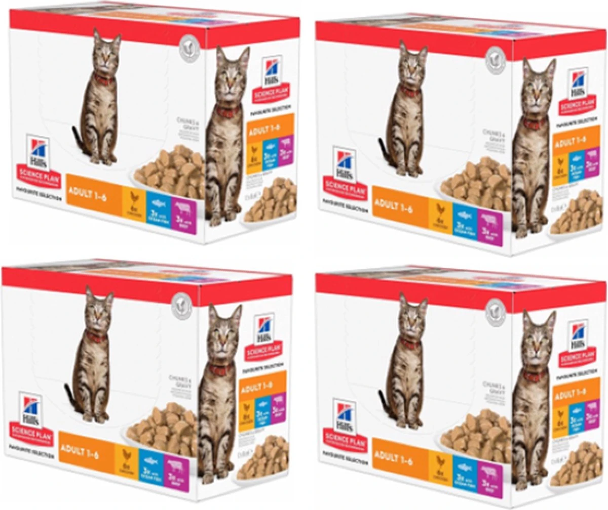 Hill’s Favourite Selection Adult multipack kip, rund & zeevis nat kattenvoer