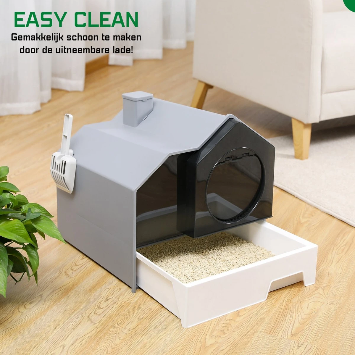 ● Gemakkelijk Schoonmaken: Door de uitneembare lade is deze kattenbak heel gemakkelijk schoon te maken!