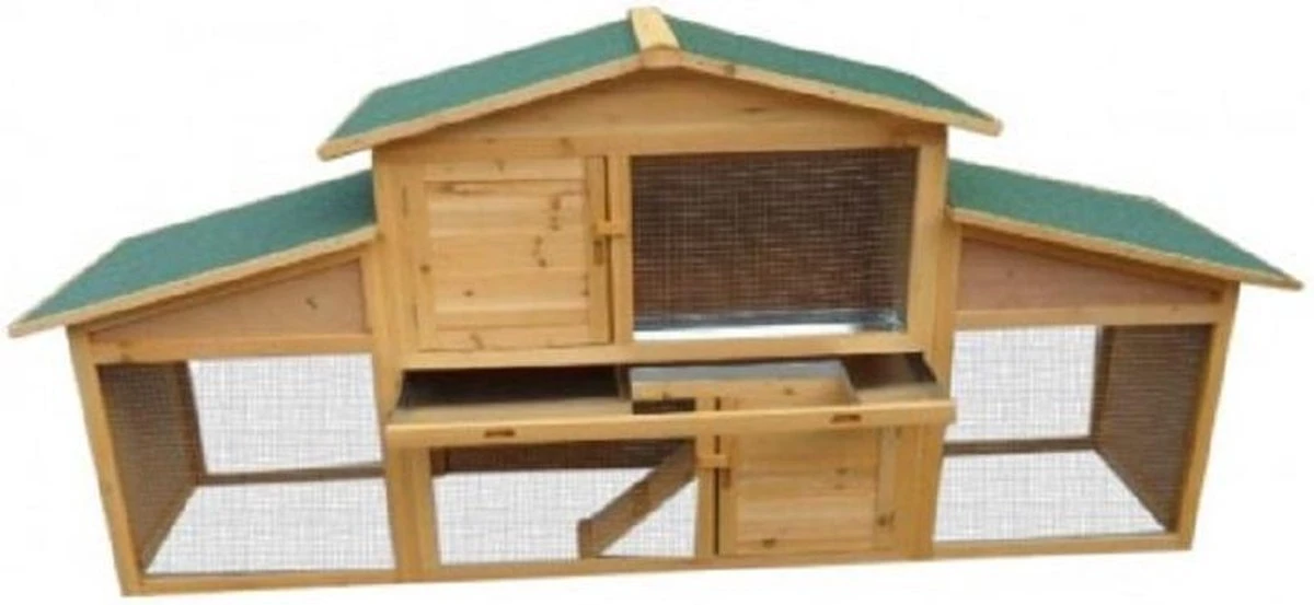 Konijnenhok met ruime ren en nachtverblijf
