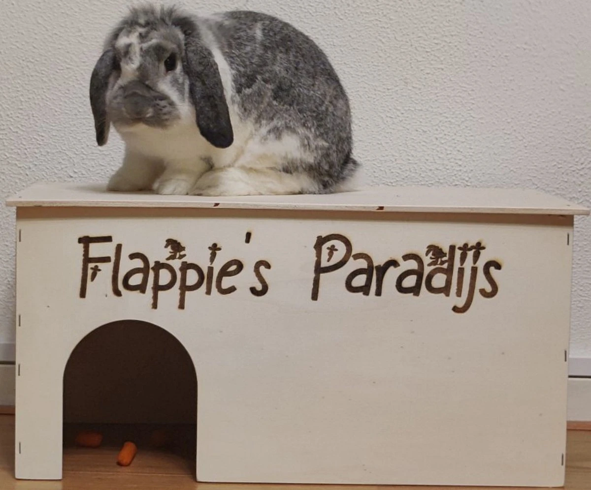 Na uw bestelling sturen we binnen 24 uur een mail met de vraag welke tekst/naam u op het konijnenhuis wilt laten zetten.