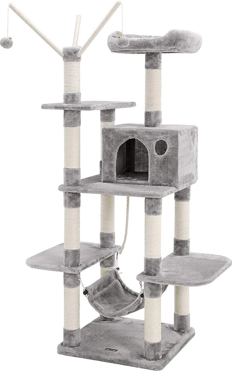 FURNIBELLA XXL klimboom, stabiele krabpaal met hangmat, grot, speelsisal, 154 cm, rookgrijs beige lichtgrijs