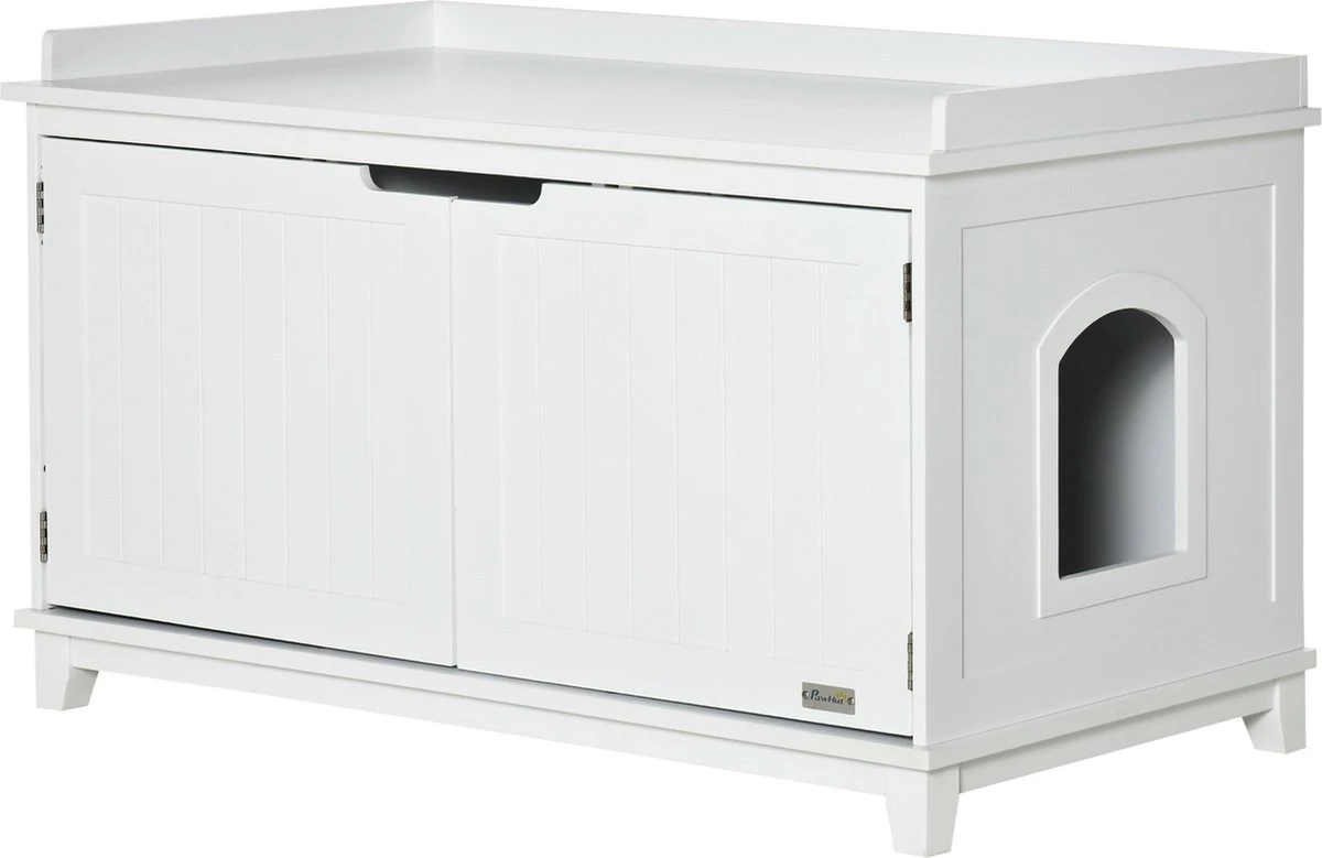 Diese Katzentoilette ist nicht nur ein praktisches Katzenzubehör, sondern auch ein dekoratives Möbel. Über den vorderen Eingang kann die Katze ganz leicht ins Innere dem katzenhaus gelangen. Das clevere und alltagstaugliche Design verfügt über praktische Schranktüren mit Magnetverschluss. Egal ob als Katzentoilette, Katzenhöhle oder als Beistellschrank – dieser Katzenschrank ist eine schöne und clevere Wohnraumlösung.