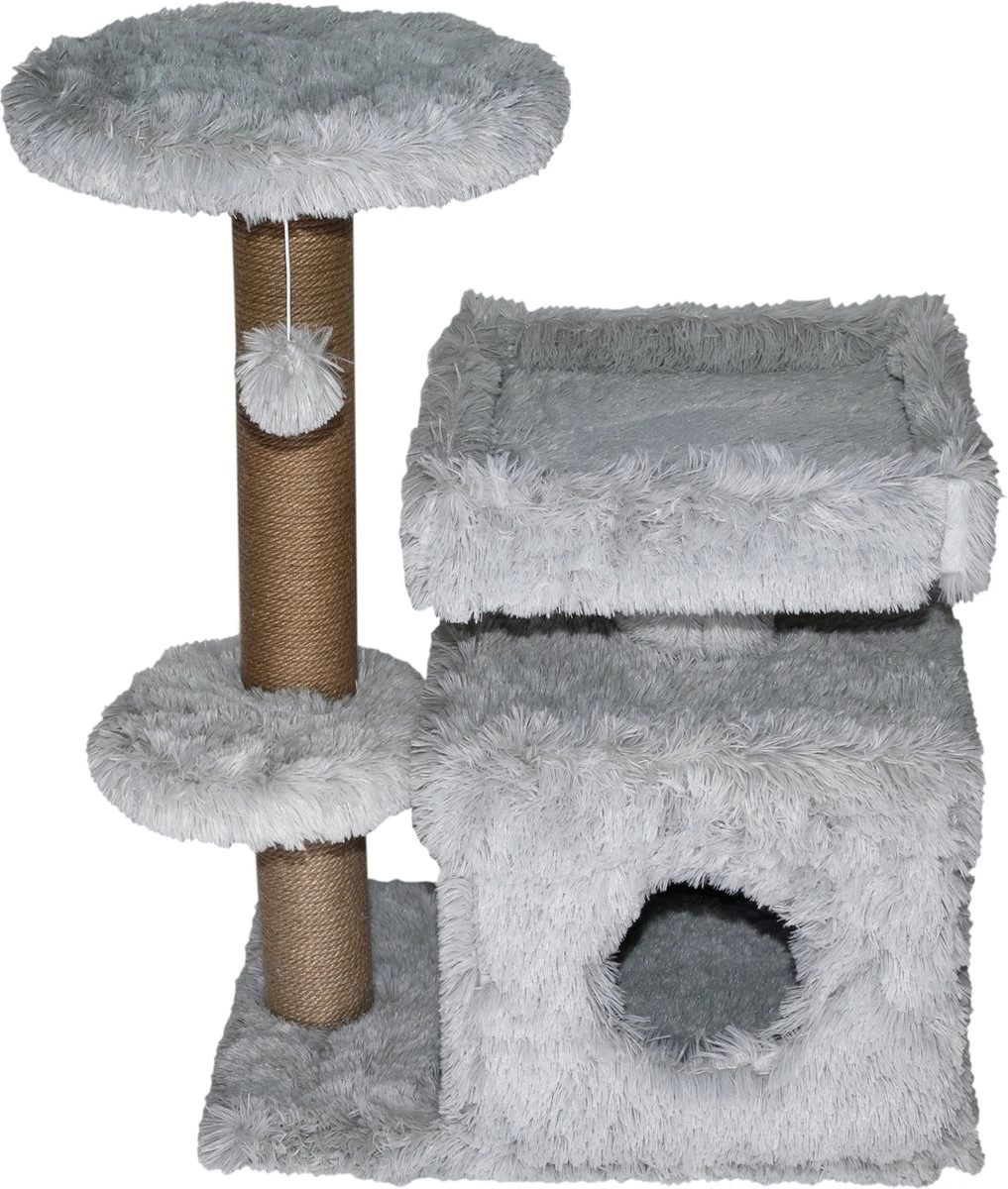 - Gemaakt van 100% polyester fluffy en voorzien van twee sisalpalen om aan te krabben
