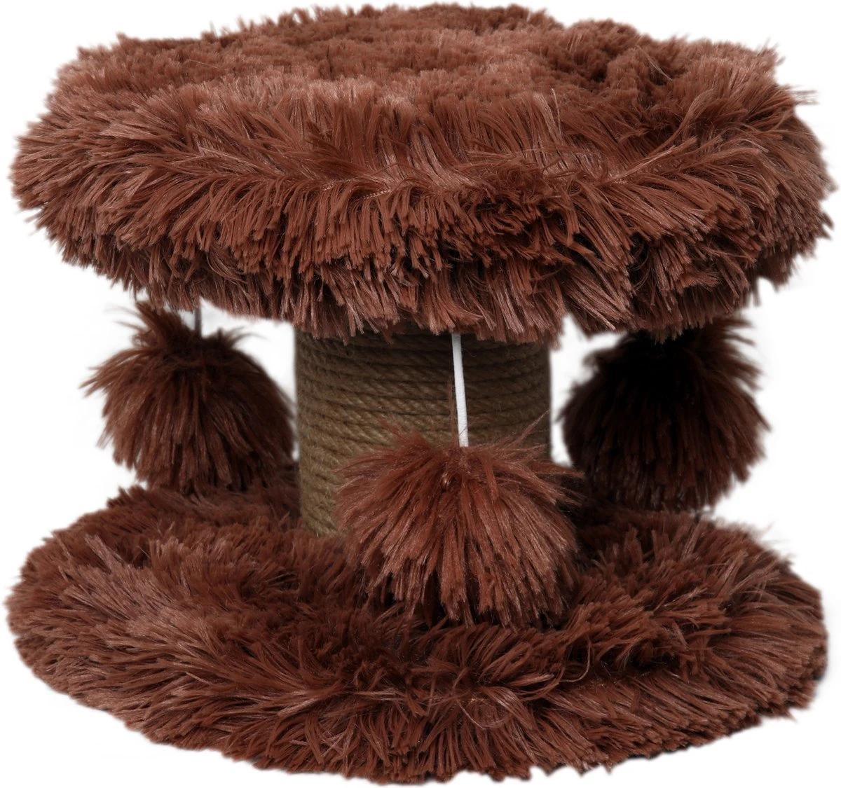 Topmast Krabpaal Fluffy Lycia – Bruin – 25 X 25 X 20 Cm – Made In EU – Krabpaal Voor Kittens – Met Kattenspeeltjes – Sterk Sisal Touw – Mini Krabpaal