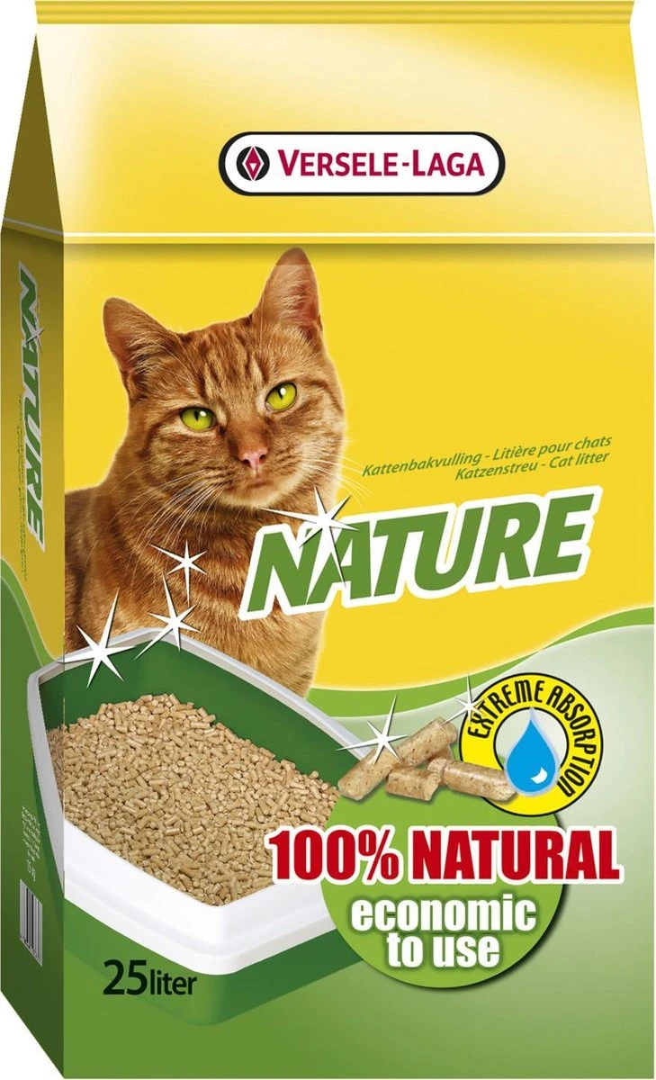 Natuurlijke kattenbakvulling op basis van houtvezel.