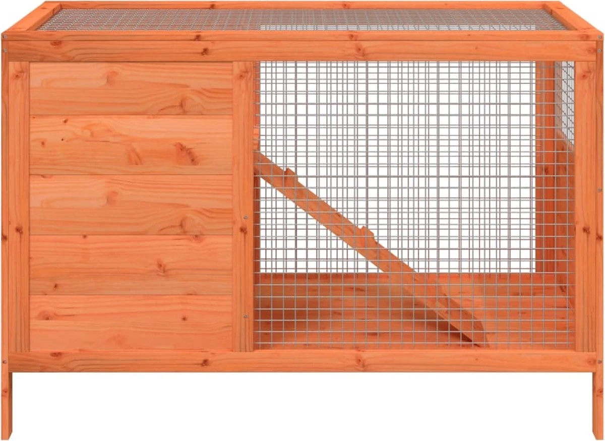 Dit konijnenhok met een ruim activiteitencentrum en een slaapgedeelte biedt een veilige en comfortabele plek voor je dierenvriendjes zoals konijnen, cavia’s, kleine eenden en andere kleine huisdieren om te spelen en te rusten.