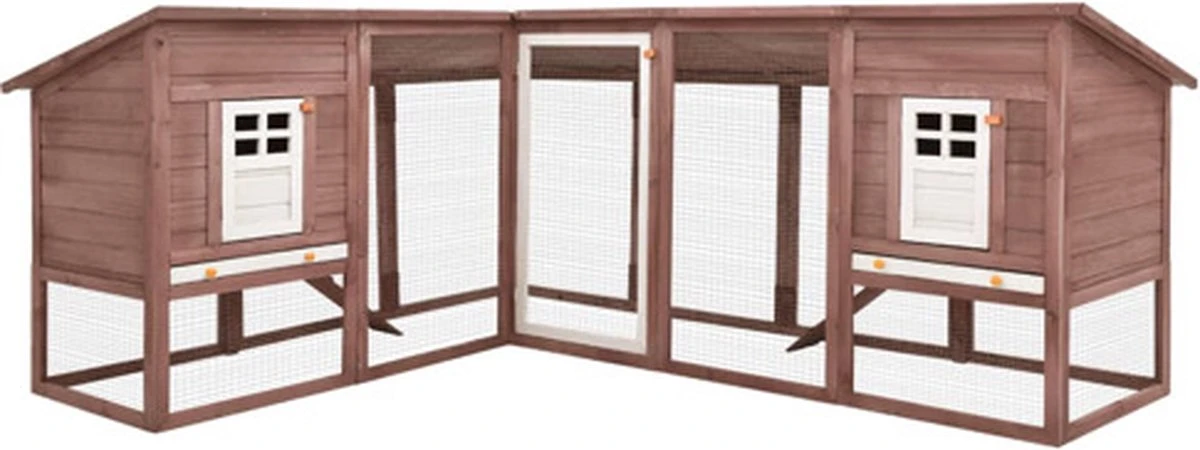 VidaXL Konijnenhok Voor Buiten Met Ren Massief Vurenhout Mokka En Wit